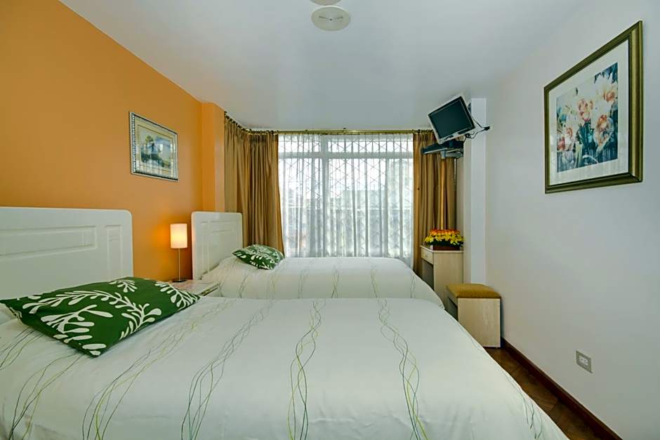 This spacious room features a double bed and a single bed, and cable TV.